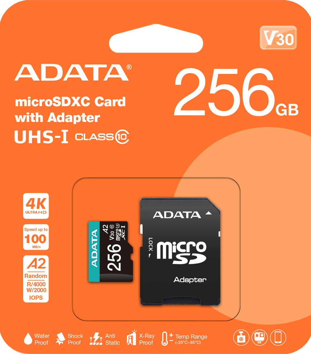 Implementing high speed UHS-I U3 specifications, Premier Pro microSDXC/SDHC UHS-I memory cards support high definition Full HD, 3D, and 4K Ultra HD video recording. They meet V30 (Video Speed Class) specs, meaning they can record a minimum 30MB of video per second.