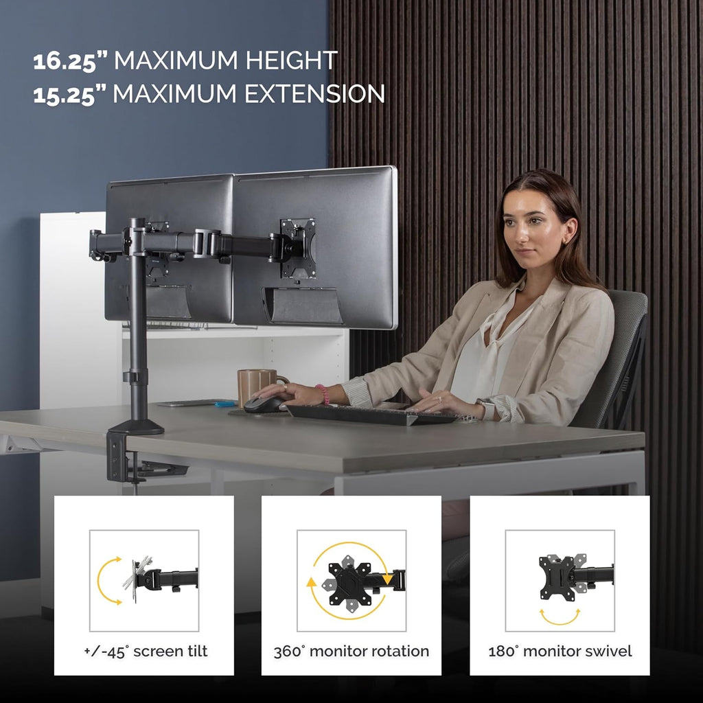 Strong & Secure Support: Holds two monitor's up to 27" Inch each, with a maximum weight of 8kg per monitor